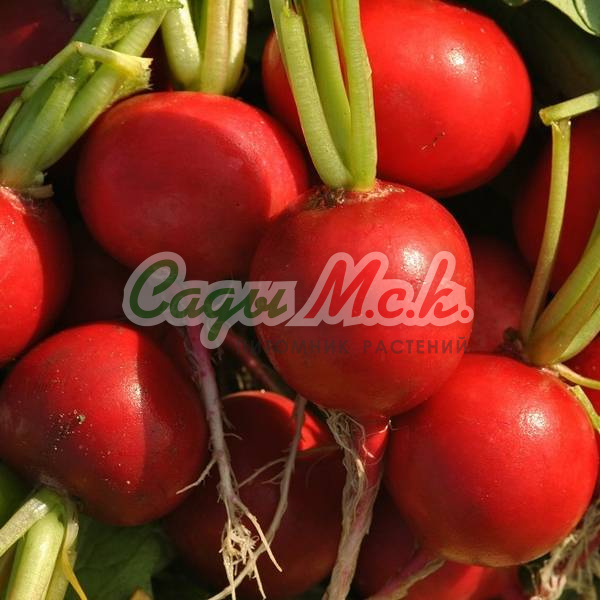 Раннеспелый (20-25 дней от всходов до технической спелости) сорт. Розетка листьев полупрямостоячая. Черешок со слабой антоциановой окраской. Корнеплод округлый, красный, головка выпуклая. Мякоть белая, плотная, сочная. Масса корнеплода 20-23 г. Устойчив к растрескиванию и цветушности. Посев в грунт производится в конце апреля-начале мая. Для позднелетнего и осеннего употребления семена редиса высевают с 15-20 июля по конец августа. Урожайность до 2,3 кг/м2