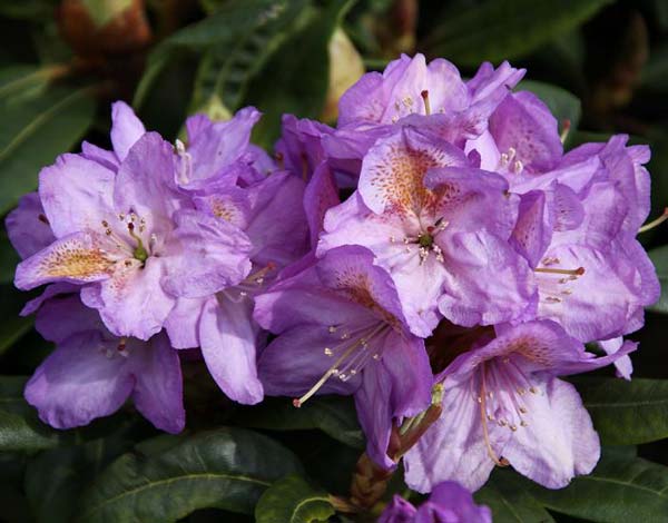 Рододендрон Blutopia - среднесильнорослый сорт. К 10-ти годам достигает 150 см в высоту и ширину. Листья большие, матово-зелёные, декоративные. Очень своеобразные фиолетовые цветы с оливково-зелёным пятном посередине. Наружная сторона лепестков пурпурно-фиолетовая. Цветёт намного раньше, чем большинство гибридов этой группы - во второй половине мая. Морозоустойчив сорт.