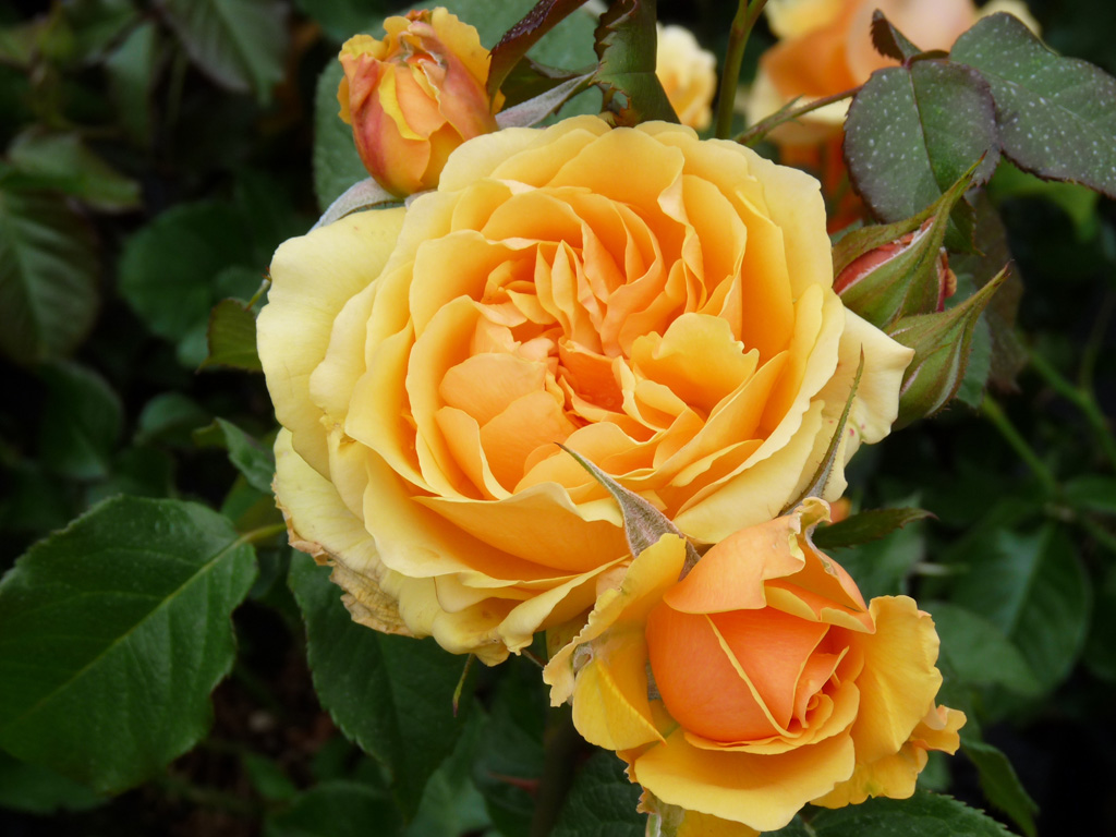 Amber Queen -изумительна роза янтарно-желтого, медового цвета. Цветки абрикосово-золотистые с янтарным оттенком, чашевидные, махровые (25 – 30 волнистых лепестков), собранные в соцветия по 3 – 7 цветков , долго держатся на стебле. Диаметр цветка 7-8 см. Цветение обильное, непрерывное. Аромат приятный, яблочный с лимонным оттенком. Куст компактный, высотой до 90 см. Листья зеленые, молодые с бронзовым оттенком, крупные, полуглянцевые, плотные. Устойчив к заболеваниям и морозостойкий сорт.