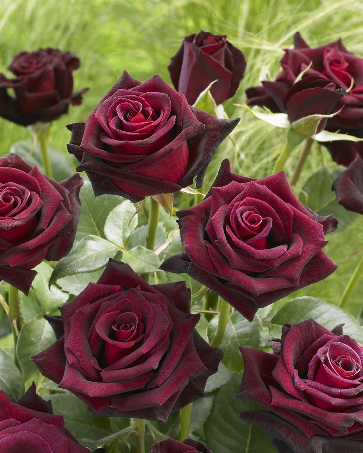 Самый черный сорт» создает куст высотой до 1 м. Стебли прямые, жесткие, без шипов, покрыты зеленой листвой с красноватым оттенком. Высота бутона – около 9 см, диаметр – 11 см. Цвет – черно-бордовый. Цветки темнеют в холодную погоду, на солнце не выгорают. Густомахровые, в одном бутоне до 55 лепестков. Крупномеры Black Baccara обладают высокой морозоустойчивостью. При неблагоприятных условиях могут болеть, хотя вредители на саженцы нападают редко. Сорт идеален для срезки.