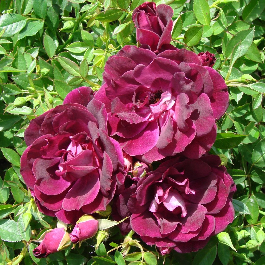 Саженцы розы Burgundy Ice высокого качества и по адекватной цене можно найти в нашем профессиональном питомнике. Густой, прямостоячий куст вырастает до 1,5 м в высоту и около 0,6 м в ширину. Листва проявляет среднюю устойчивость как к заболеваниям, так и к дождю. Крупномер Burgundy Ice зацветает цветками необычного цвета. Бархатные лепестки переливаются пурпурными, насыщено сливовыми оттенками. Размер бутонов – 7-8 см. Они собраны в кисти по 3-5 штук. Цветки источают приятный, но ненавязчивый аромат. Кусты особенно органично смотрятся в массовой посадке. Саженцы отзываются на подкормки, на зиму требуют укрытия.