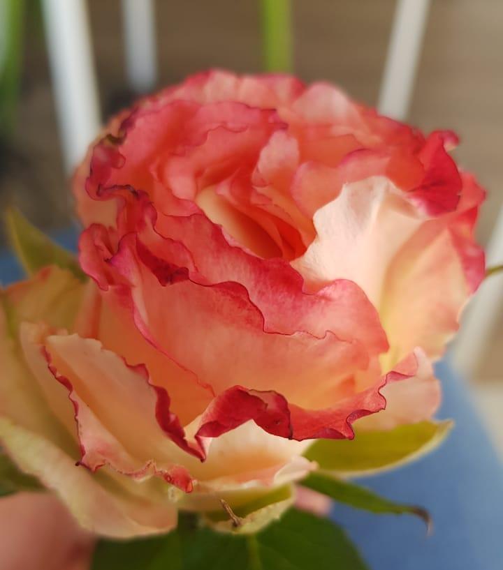 Чайно-гибридная роза. Цветки бокаловидной формы, перламутровые, ванильно-белого цвета с тонкой розовой каймой, имеют 26-40 лепестков. Лепестки гофрированные. Высота куста 80-90см. Цветёт на протяжении всего сезона. Основное назначение срезка, можно использовать для озеленения. В дождливую погоду могут появляться "веснушки"