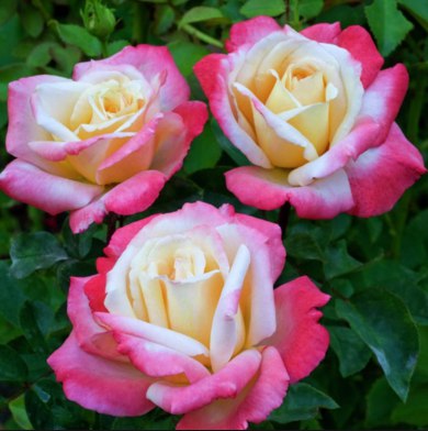 Роза Laetitia Casta стойкая к заболеваниям, сильная и роскошная. Цветок розы диаметром 11-12 см, махровый, идеальной классической формы, состоит из 25-30 лепестков - кремового, а по краям розово-красного цвета. Лёгкий аромат чайной розы и зелёного чая, напоминает свежесть весеннего утра. Растение радует постоянным, обильным цветением и плотными, темно-зелеными, полуматовыми листьями. Высота куста этого морозостойкого растения- 70-130 см.