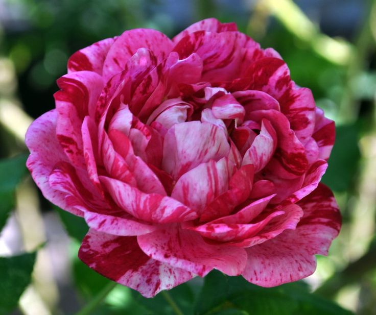 Роза Commandant Beaurepaire - растение мощное, сильнорослое с прочными прямостоячими побегами, его высота достигает 120 - 150 см, размер куста 120 х 120 см. Лист средний, светло-зеленый, глянцевый. Цветок кремово-розовый с фиолетовыми полосами, штрихами и белыми пятнами, шаровидный до чашевидного, махровый, 40 - 55 лепестков в одном цветке. Диаметр цветка 6 - 8 см. Эта роза обладает насыщенным ароматом с нотками лимона. Цветение продолжительное, повторное, на одном цветоносе в период массового цветения насчитывается 2 - 3 цветка одновременно.