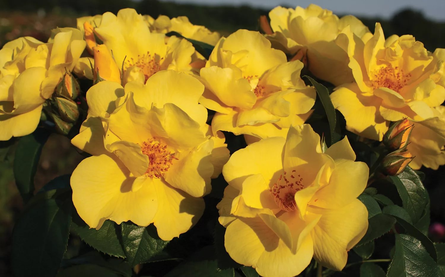 Lemon Fizz желто-оранжевая роза. Цветки среднего-размера, слабо душистые, махровые (20 лепестков в одном цветке). Высота растения 90 см. Куст сильнорослый, прямостоячий. Листья темно-зеленые, сильно блестящие.
