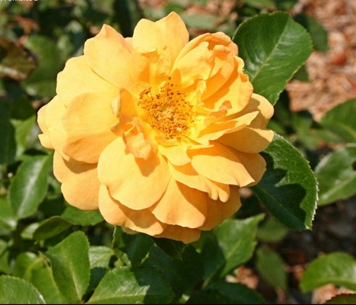 Golden Years цветки бледно-оранжевые, с золотыми и абрикосовыми тонами, махровые (46 лепестков). Более темная окраска с изнанки создает темно-золотистые тени между лепестков, даже когда цветок полностью распустится. Хорошо держит окраску на ярком солнце, и хотя цветки широко раскрываются, лепестков так много, что тычинки никогда не видно. Листва темно-зеленая, блестящая, побеги довольно колючие. Высота растения 80-100 см.