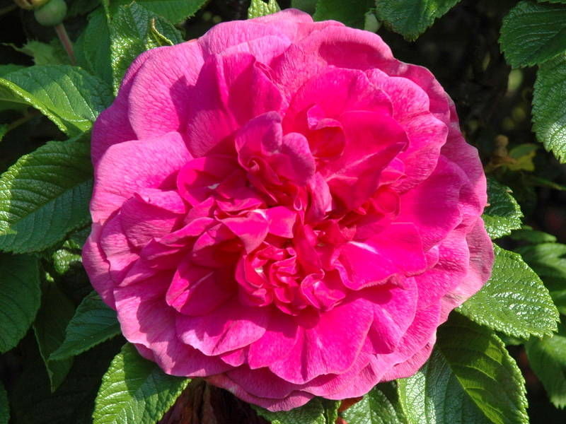Саженцы розы Hansa неприхотливой, красивоцветущей ругозы, в нашем питомнике можно приобрести по привлекательной цене. Куст вырастает до 2 м в высоту и около 1,5 м в ширину. Стебли длинные, гибкие, покрытые многочисленными удлиненными шипами. Крупномер Hansa формирует кисти из 3-5 бутонов. Размер цветка – до 10 см. Форма – полумахровая, слегка растрепанная. Роза источает приятный, легкий аромат. Оттенок – розово-фиолетовый, темно-розовый. Саженцы проявляют высокую устойчивость к черной пятнистости и мучнистой росе. Сорт непрерывно цветущий, первые бутоны появляются весной.