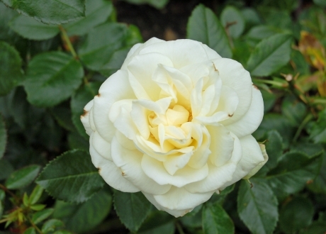 La Paloma красивая белая роза. Бутоны элегантные, появляются по одному или в небольших кистях. Раскрываются медленно, долго держат форму. Цветки вначале кремового цвета, с лимонным центром, позднее чисто белые. Размер цветка 7-8 см. В кистях находится до 9 роз. Высота растения 50-60 см. Листва темная, блестящая, куст ветвистый, сильный. Очень здоровое и обильноцветущее растение, цветки хорошо переносят дождь.