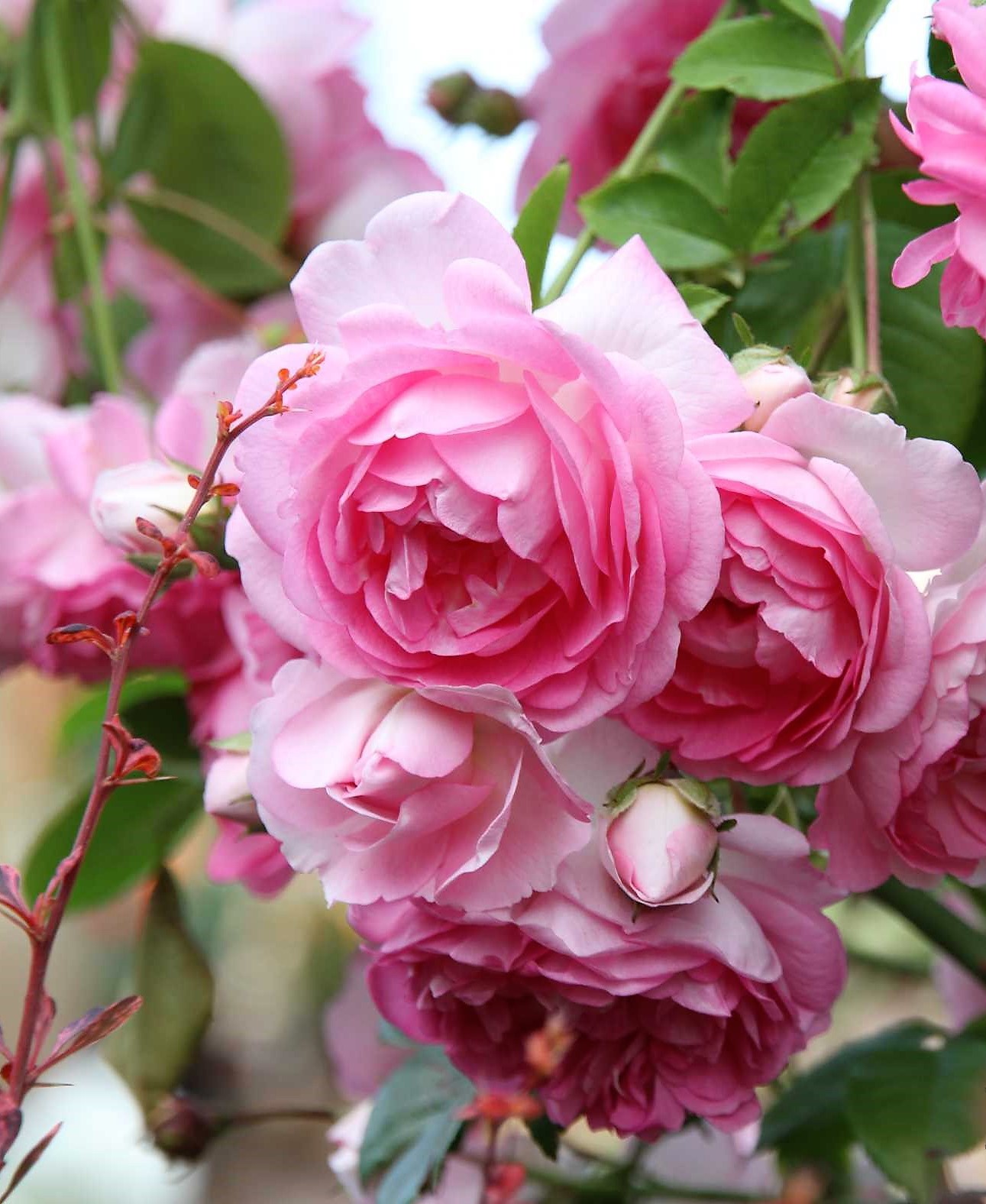 Роза Jasmina - уникальный сорт плетистых роз. Обильноцветущая, усыпанная невероятным количеством гроздьев цветков, красивая и невероятно ароматная. Цветки сиренево-розовые, цикламеновые, чашевидные, в кистях по 10-15 штук, очень душистые, со сладким жасминовым ароматом. Куст ветвистый, хорошо разветвленный. Листва средних размеров, густая, слегка блестящая.