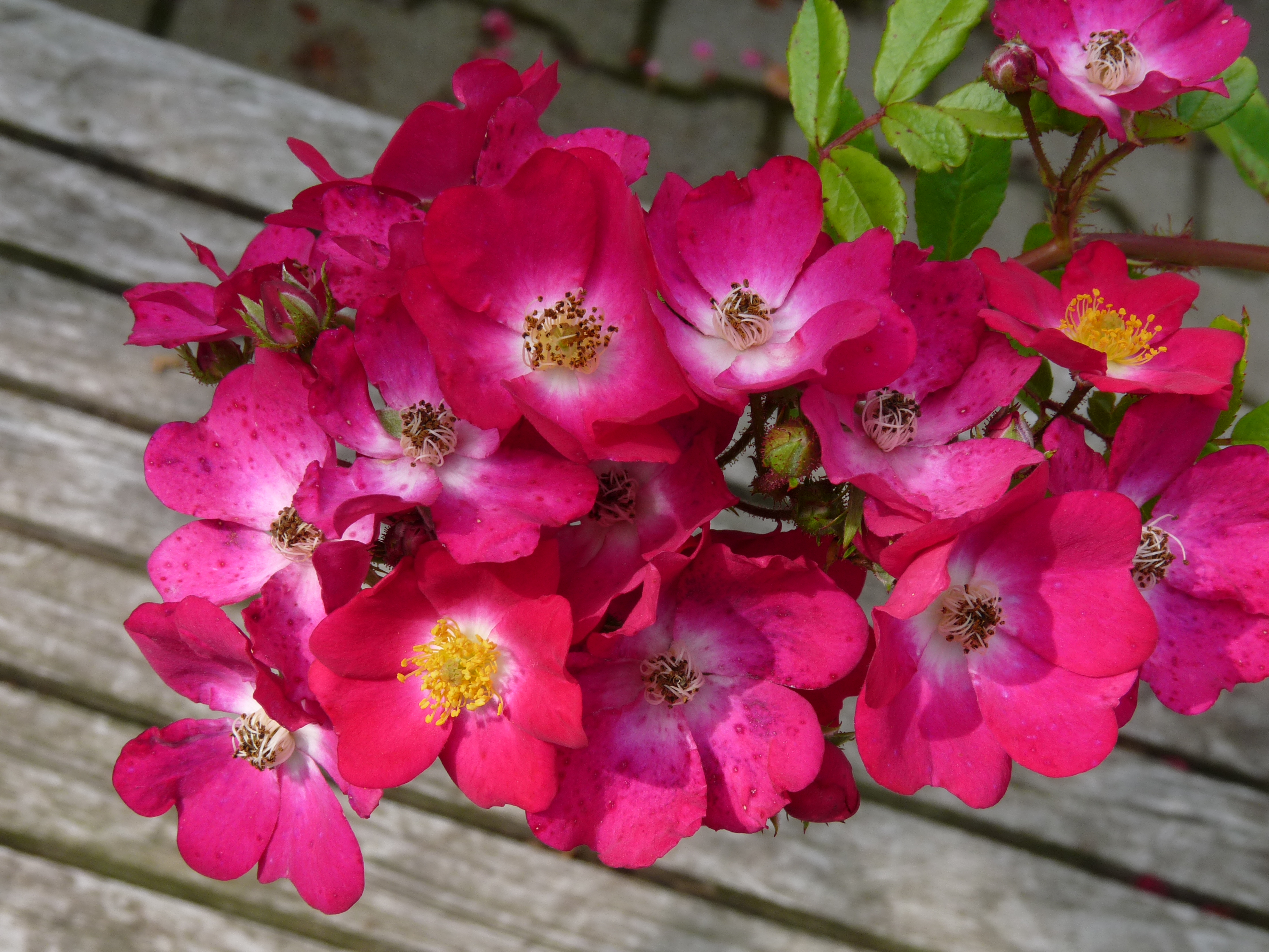Роза Red Ballerina широко используется для оформления сада. Простые цветки малинового цвета с белой серединкой и яркими желтыми тычинками состоят из пяти лепестков, в диаметре 2-3 см. Они собраны в соцветия до 20-30 шт. Цветет сорт очень обильно – с конца весны и до глубокой осени. Цветы держатся на кусте длительное время и легко переносят дождливую погоду. После них обычно созревают мелкие декоративные плоды красного цвета. Объемный куст высотой 120-150 см и шириной 150 см округлой формы, постоянно выпускает новые побеги. Листва тонкая, густая, имеет ярко-зеленый окрас и легкий блеск. Устойчивость к заболеваниям и вредителям хорошая. Морозостойкость высокая.