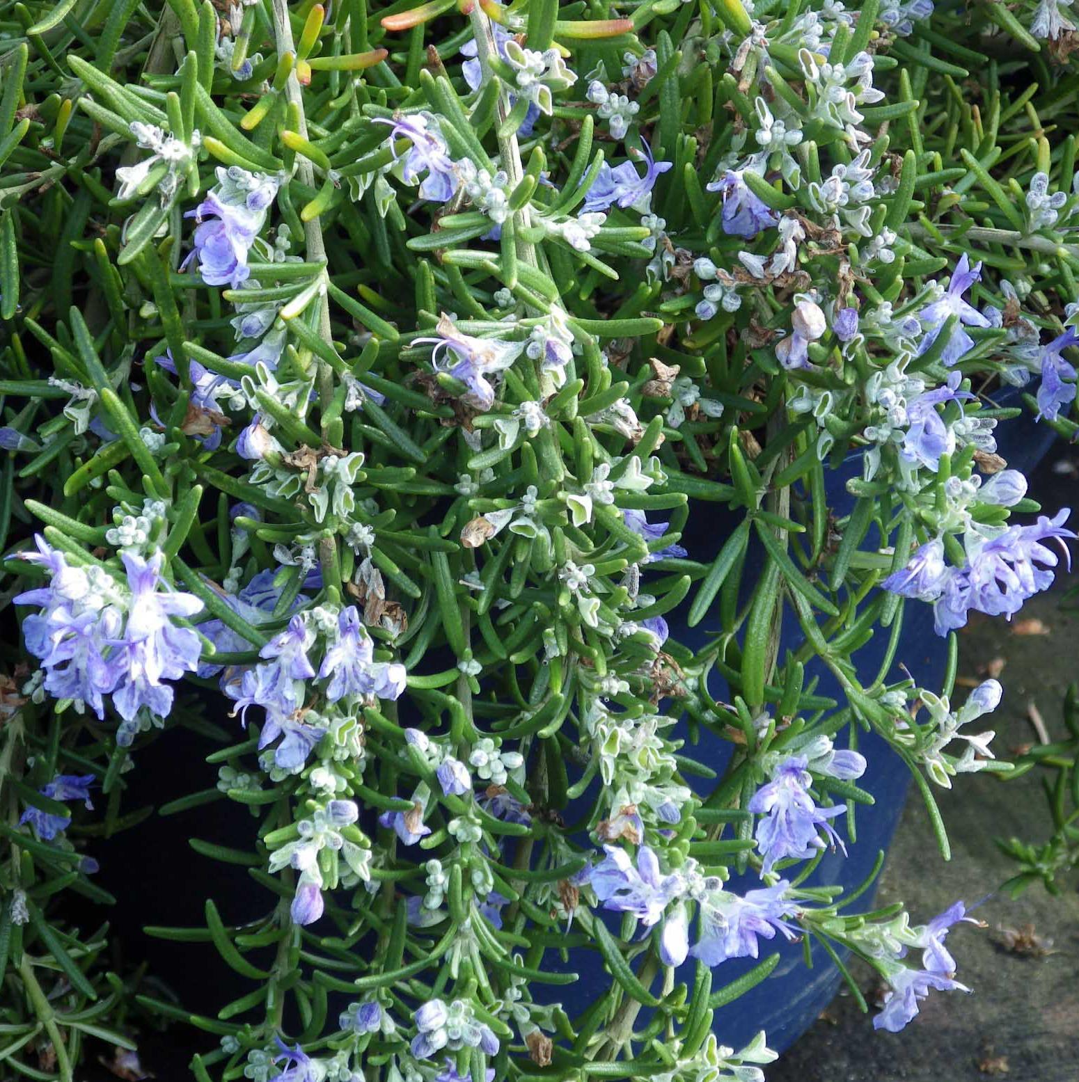 Розмарин лекарственный Корсикан Блю - вечнозеленый, густооблиственный Высота 0,5 м, ширина до 1,2м. С повторным цветением осенью. Беречь от вымокания. Корневая система мощная, сильно развитая, проникает в почву на глубину до 3—4 м. Многолетние побеги темно-серые, с отслаивающейся корой, деревянистые, однолетние — светло-серые, опушенные. Листья линейные, супротивные, сидячие, кожистые, длиной 1,5—3,5 см и шириной 0,2—0,4 см, с загнутыми вниз краями. Верхняя сторона темно- или светло-зеленая, блестящая, нижняя — опушенная. Цветки мелкие, собраны в густые метельчатые соцветия, нежно-голубого окраса. Розмарин начинает цвести в феврале - марте, массовое цветение наступает в конце апреля - начале мая и продолжается 20 - 25 дней. Розмарин засухоустойчив. В средней полосе и на севере зимует с укрытием. Но более надежно зимой содержать растение в прохладном и светлом помещении в контейнере.