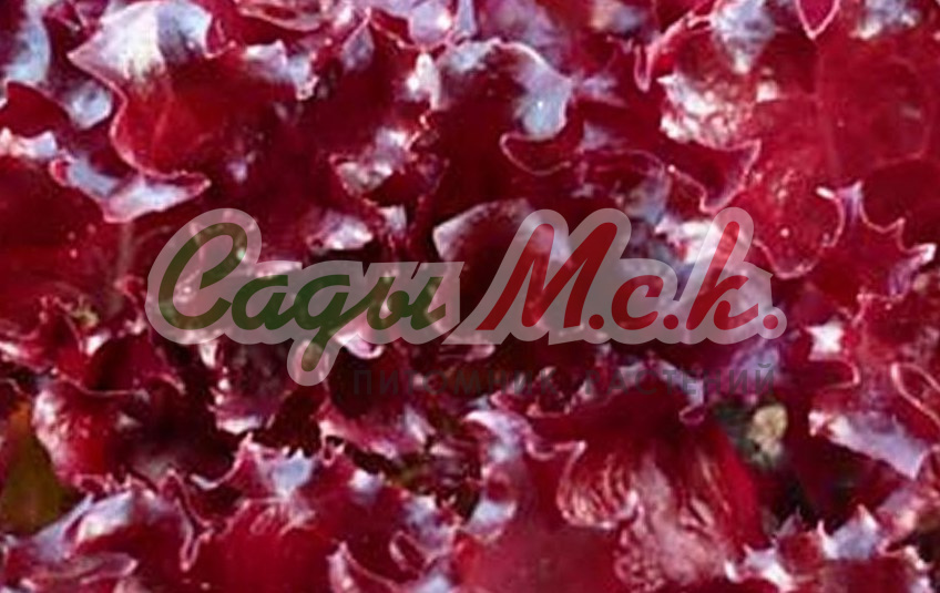 Среднеспелый (60-70 дней от всходов до уборки урожая) высокоурожайный листовой сорт салата дуболистного типа с замедленным стеблеванием, отличных вкусовых качеств. Розетка раскидистая, крупная, массой до 400 г, диаметр 39-35 см. Листья рассеченные, слабоволнистые по краю, эффектной антоциановой окраски, длиной около 25 см, нежной консистенции и высоких вкусовых качеств. Посев – в начале апреля непосредственно в грунт (0,2 г/м2) или в марте на рассаду (выход сеянцев из 1 г семян около 800 шт., схема посадки 30х30-35 см). При таком способе выращивания через 60-70 дней после всходов образуется крупная (до 40 см в диаметре) полураскидистая розетка листьев массой до 200 г.