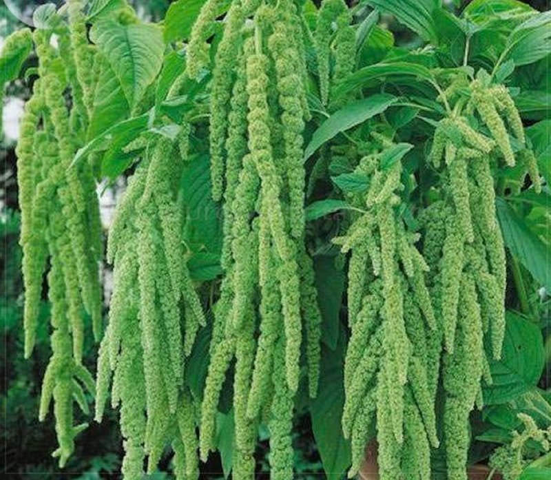 Однолетнее трявавянистое растение c мощными прямостоячим стеблем, высотой до 120 см. Листья крупные, удлиненно-яйцевидные, зеленые. Цветет с июня до заморозков. Соцветия бледно-зеленые, длинные, свисающие, метельчатые. Растение теплолюбивое, не переносит заморозков, хорошо растет на солнечных, защищенных от ветра участках с плодородной, дренированной и достаточно увлажненной почвой. На рассаду высевают в апреле (всходит через 4-6 дней), в открытый грунт в мае (всходы появляются через 12-20 дней). Рекомендуется для одиночных и групповых посадок на газоне, декорирования стен и оград. Используется широко во флористике.