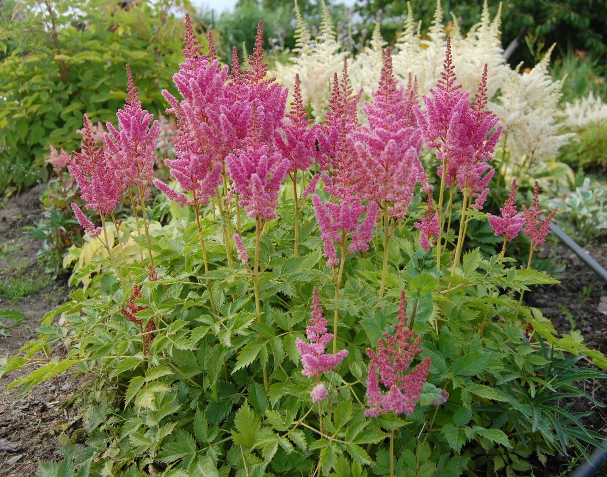 Многолетнее растение из семейства Камнеломковые высотой до 100 см. Листья сложные, тройчато-раздельные, ажурные, блестящие. Цветки мелкие, сиреневые, розовые, реже белые в эффектных плотных соцветиях 30-35 см длиной. Цветет в июне-августе, в течении 30-40 дней. Астильба предпочитает слегка затененные места с суглинистыми почвами. Может произрастать на одном месте до 15 лет. Перед посевом семена стратифицируют, раскладывая на поверхности рыхлой почвы (не заделывая), и накрыв стеклом, помещают в холодное место на 21 день. Проклюнувшиеся семена сажают в горшки в феврале-марте и оставляют в светлом месте, при температуре 18-20 С°. Всходы появляются в течении 2-3 недель. Подросшие растения высаживают в открытый грунт в мае. Астильба, выращенная из семян, зацветает на 2-3 год. Эффектна в групповых, смешанных, бордюрных посадках. Пригодна для выгонки и срезки. Хорошо сочетается с ирисами, хостами, папоротниками.