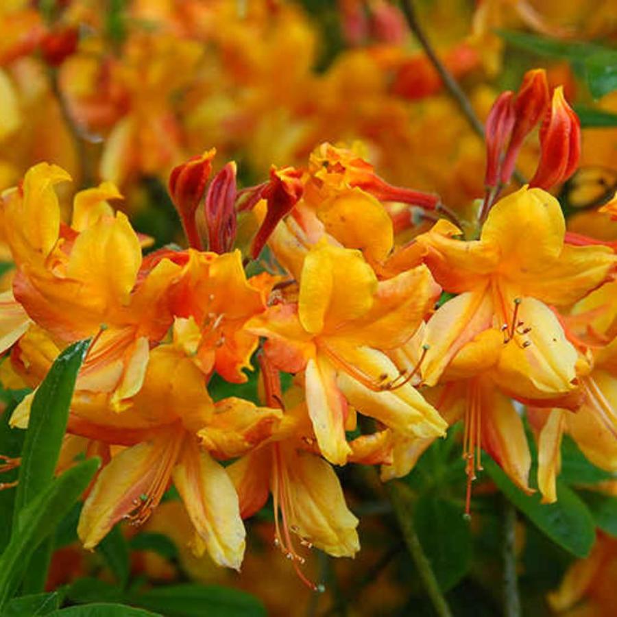 Рододендрон жёлтый Оранж Хит. Цветок ярко-оранжевый, крупные соцветия, длительное цветение. Цветение 22 дня. Диаметр цветков 6,5-8 см.Зимостойкость хорошая.