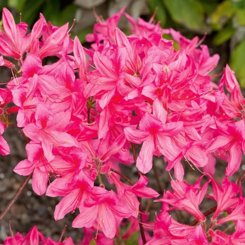 Азалия(рододендрон листопадный) Rosy Lights цветет обильно, цветки темно-розовые, диаметром несколько более 3 см, на центральном лепестке винно-красный румянец. Морозоустойчивость до минус 42°C. Из-за исключительной морозостойкости и привлекательных цветков сорт заслуживает широкого распространения.