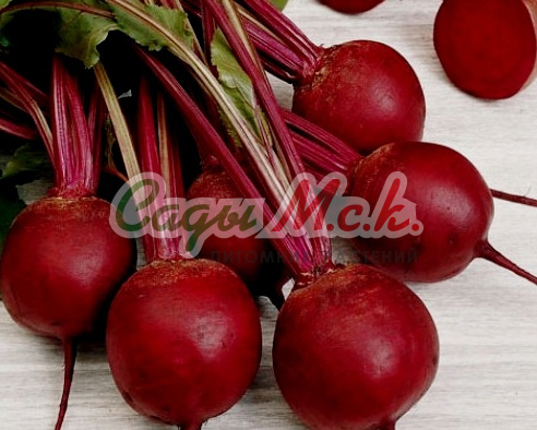 Среднеранний сорт (период от посева до техничесой спелости 95-110 дней). Корнеплоды округлые и округло-плоские, массой 250-500г, погружаемость в почве на 1/3-1/2 высоты, что облегчает и упрощает уборку. Урожайность до 7,9кг/м². Мякоть интенсивно темно-красная, нежная, сочная, сладкая, сахаристая, без кольцеватости.