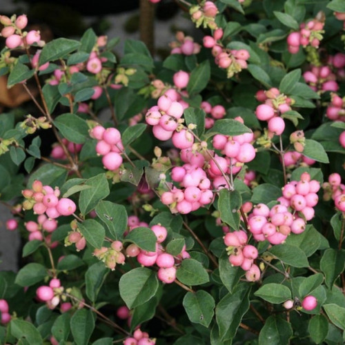 Саженцы кустарника снежноягодника Мазе оф Перл имеют довольно широкое применение: создание зеленого забора, декор беседок и т.д. Высота его до 2 метров, растет с тонкими, пластичными побегами и почти круглыми листьями, сверху зелеными, а с тыльной стороны – сизыми.