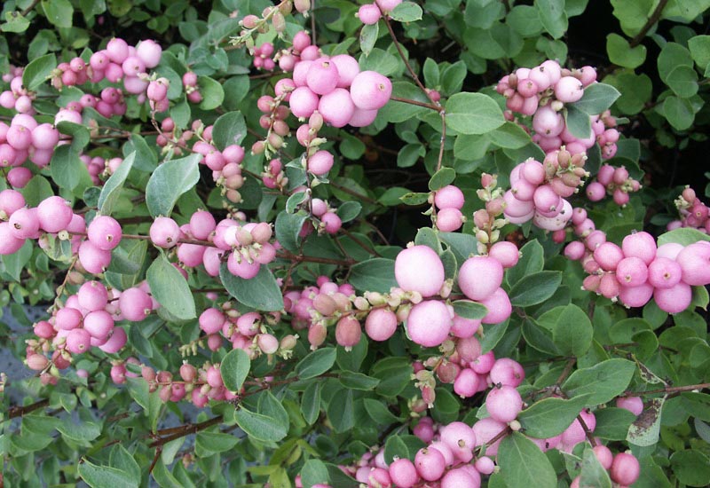 Розовые цветки небольших размеров собраны в кистеобразные соцветия, укрывающие побеги, почти, по всей длине. Кустарник снежноягодник Меджик Берри привлекает внимание своими ягодами. Розовые плоды чрезвычайно красивы, но ядовиты.