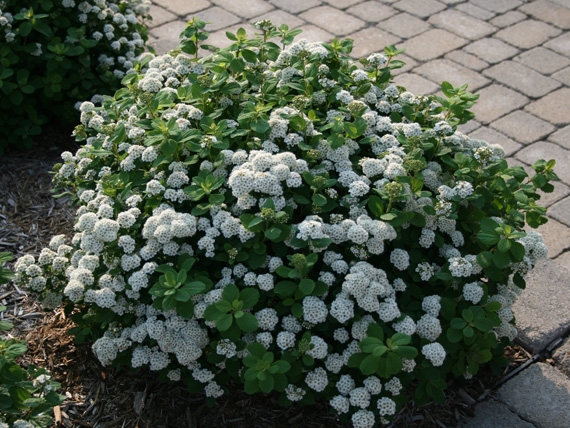 Компактный листопадный шаровидный кустарник высотой до 1 м и таким же диаметром кроны. Цветет с июня до середины августа бело-кремовыми, собранными в щитки цветками. Листья темно-зеленые до 4 см длиной, имеют овальную форму и зазубренные края. Осенью окрашивается в ярко-желтый цвет, а на кислых почвах окраска может быть красно-оранжевой и даже пурпурной. В теплую осень может цвести повторно. Зимостойка, устойчива и нетребовательна к условиям произрастания. Предпочитает почвы от кислых до слегка щелочных. Основной уход заключается в удалении отцветших соцветий и обрезка для поддержания шаровидной формы
