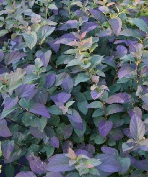 Молодая листва весной - темно-красная (бургунди), зрелая летом- прохладно-сине-зелёная, к осени - фиолетово-красная