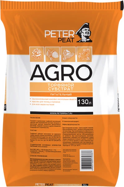 Торфяной субстрат (pH 5,5-6, PGMix, Линия АГРО) 50л - для выращивания рассады овощных и цветочных культур, комнатных декоративных растений, создания гпазонов и других элементов ландшафтного строительства. Оптимален для теплиц и парников.