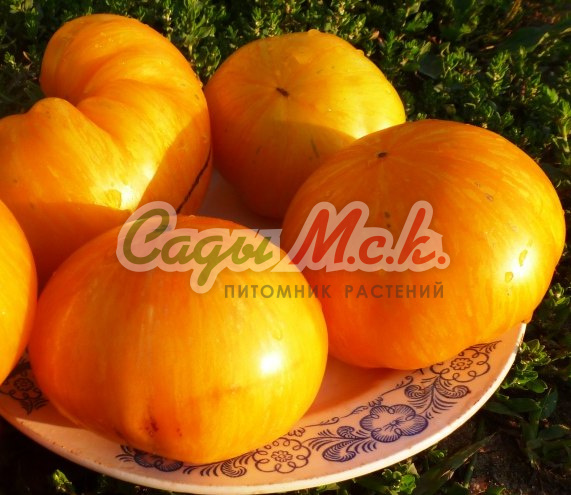Раннеспелый (98-110 дней) высокорослый сорт для открытого грунта и пленочных укрытий. Плод округлый, гладкий, крупный, массой 180-300 г, мясистый, сладкий, с малым количеством семян, по цвету и форме напоминает апельсин. Ценность сорта: стабильная урожайность, выравненность плодов, высокие вкусовые и товарные качества. Рекомендуется для потребления в свежем виде, приготовления салатов и консервирования. Посев на рассаду — в конце февраля – начале марта. Пикировка — в фазе первого настоящего листа. Высадка рассады в теплицы — в конце апреля — начале мая. Обязательна подвязка растений через несколько дней после высадки. Формируют в один стебель, удаляя все «пасынки» и нижние листья, а также прищипывают точку роста в конце вегетации. Схема посадки: 40х60 см.