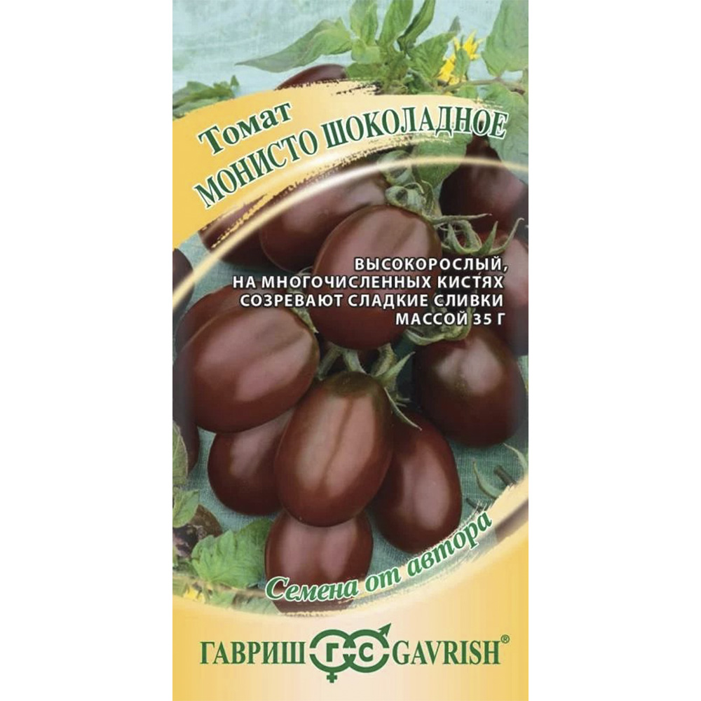 Характерная особенность сортов группы Монисто это невероятно обильное и дружное плодоношение. В эту пору растение очень декоративно — небольшие сахарные сливки в многочисленных кистях по 25-30 плодов плотно покрывают высокорослый куст. Растение индетерминантное (с неограниченным ростом), рекомендуется для теплиц и пленочных укрытий, возможно выращивание в открытом грунте с подвязкой к кольям (южные регионы). Плоды массой 25-35 г, красивого шоколадного цвета, очень вкусные, с высоким содержанием сахара, созревают на растении через 110-120 дней после появления всходов. Отличный сорт для приготовления ярких свежих салатов, аппетитных закусок и разноцветных консервированных ассорти с сортами Монисто янтарное, изумрудное и розовое. Посев на рассаду — в марте. Пикировка — в фазе первого настоящего листа. Высадка в теплицы — в мае. Формируют в один стебель, удаляя все «пасынки».