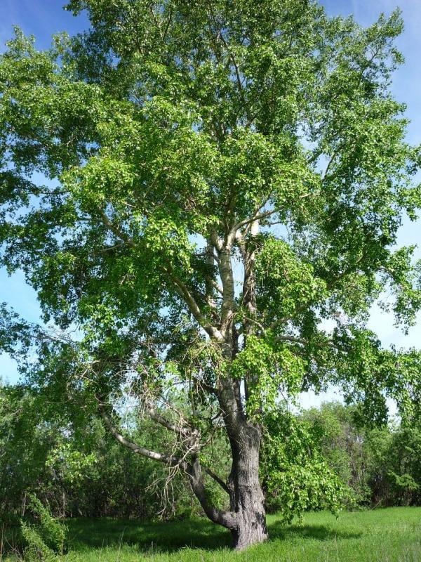 Тополь бальзамический - двудомное листопадное дерево до 30 м высотой и до 2 м в диаметре ствола. Крона рыхлая, широкояйцевидная, умеренно раскидистая. Молодые побеги слегка угловатые. Листья простые, 5-12 см длиной, яйцевидные, с округлым или ширококлиновидным основанием и постепенно заостренной верхушкой, сверху темно-зеленые, снизу бледные.