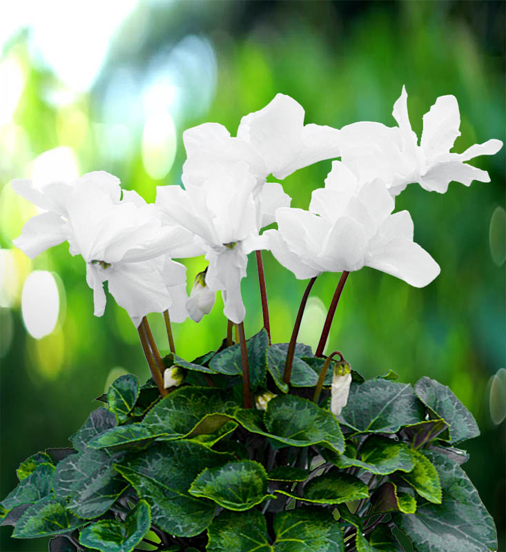 Принадлежит к группе цикламенов с особо длинными (30 см), прочными цветоносами. Может быть использован для срезки. Ароматные цветки очень крупные (размером 6-7 см), махровые (7-11лепестков), что выгодно отличает этот цикламен от многих других. Из технологических достоинств сорта следует отметить достаточно быстрый, стабильный рост и устойчивость к болезням и вредителям. Выращенные из семян растения хорошо приспособлены к комнатным условиям, так как адаптируются к ним с самого раннего возраста. Посев – в любое время года, оптимально – ранней весной и в августе. Перед посевом семена замачивают до набухания (во влажной салфетке, бумаге). Сеют в легкий грунт на глубину 1 см. При температуре не выше 20°С семена прорастают в среднем 30- 40 дней. В фазе двух настоящих листочков сеянцы рассаживают в горшки диаметром 6-7 см (клубеньки после пересадки в горшки должны на одну треть возвышаться над уровнем грунта). Молодые цикламены не имеют периода летнего покоя, взрослые растения летом сбрасывают листья.