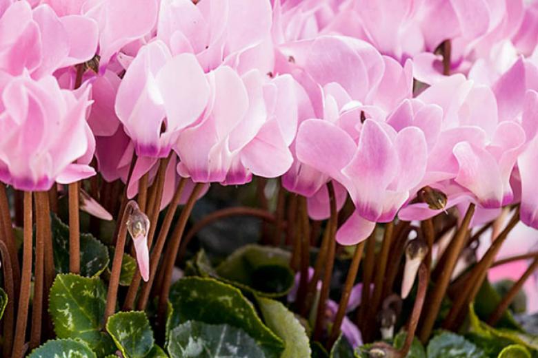 Цикламен персидский Розмари - Многолетнее клубневое растение семейства Первоцветные. Цветки очень ароматные, цветонос достигает длины 15 -20 см. Цветет с поздней осени до конца апреля, летом находится в состоянии покоя. Оптимальный срок посева конец августа. Семена перед посевом замачивают на сутки в теплой воде, а затем высевают в горшки с листовой и торфяной землей(1:1).Сверху семена присыпают слоем земли 0,5-1см, обильно поливают, накрывают темной пленкой. При t 20°C всходы появляются через 30-40 дней. После появления всходов притенение снимают, температуру снижают до 15-17 °C. Когда образуются маленькие клубеньки с двумя листочками, пикируют в ящики со смесью из листовой, торфяной земли и песка (2:1:0,5). При пересадках у молодых растений верх клубенька должен находиться у самой поверхности почвы (не глубже 0,5 см). У взрослых растений верх клубня обычно открыт. В период покоя сбрасывает листья. Выращивают на северных и восточных окнах, на южном притеняют от прямых солнечных лучей. Зимой содержат на светлом месте при температуре не выше 8 - 10 градусов. Летом необходимо выполнять приемы по поддержке роста растений: поливать исключительно через поддон, опрыскивать водой комнатной температуры, удобрять. Удобряют не более 2-3 раз за лето, преимущественно азотно-калийными удобрениями.