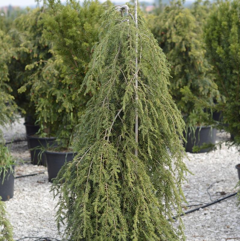 Вечнозелёный кустарник или дерево плакучей формы, с дyгообразно приподнятыми, сильно свисающими, почти вертикально вниз ветвями, с возрастом ветви перекрещиваются в нескольких местах.