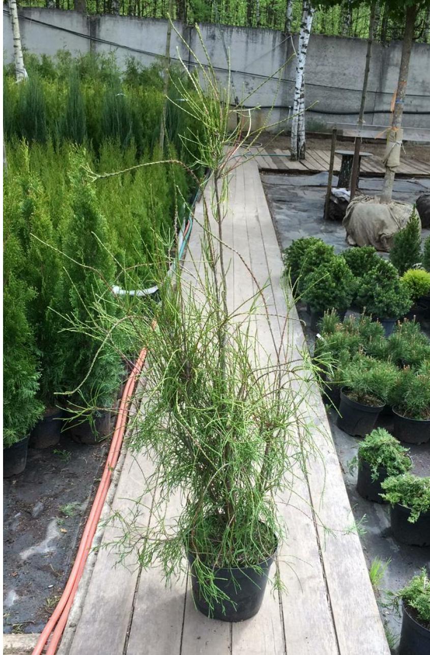 Хвоя: зеленая, нитевидная чешуйчатая, в зимний период буреет.
