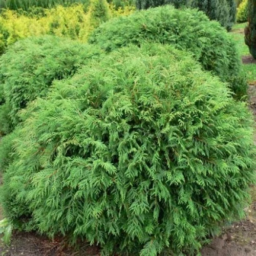 Туя западная Little Champion - компактный хвойный кустарник с густой округлой кроной, достигает в высоту до 1,5 м и 1 м в диаметре. В 10-летнем возрасте размер растения 0,5 м в диаметре. Крона рыхлая, ветви прямые, цвет листвы во время вегетационного периода зеленый, к зиме становится бронзовым или коричневым. Медленно растущий вид: ежегодный прирост 9 см. Светло-зеленая хвоя темнеет до буро-коричневой в зимний период, чешуевидная, плотная. Шишки мелкие коричневые. Сорт используется в одиночных и групповых посадках, альпинариях, его часто высаживают в горшки или контейнеры на террасах, вдоль садовых дорожек.