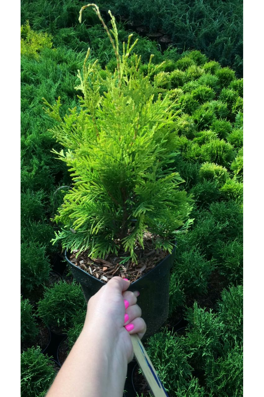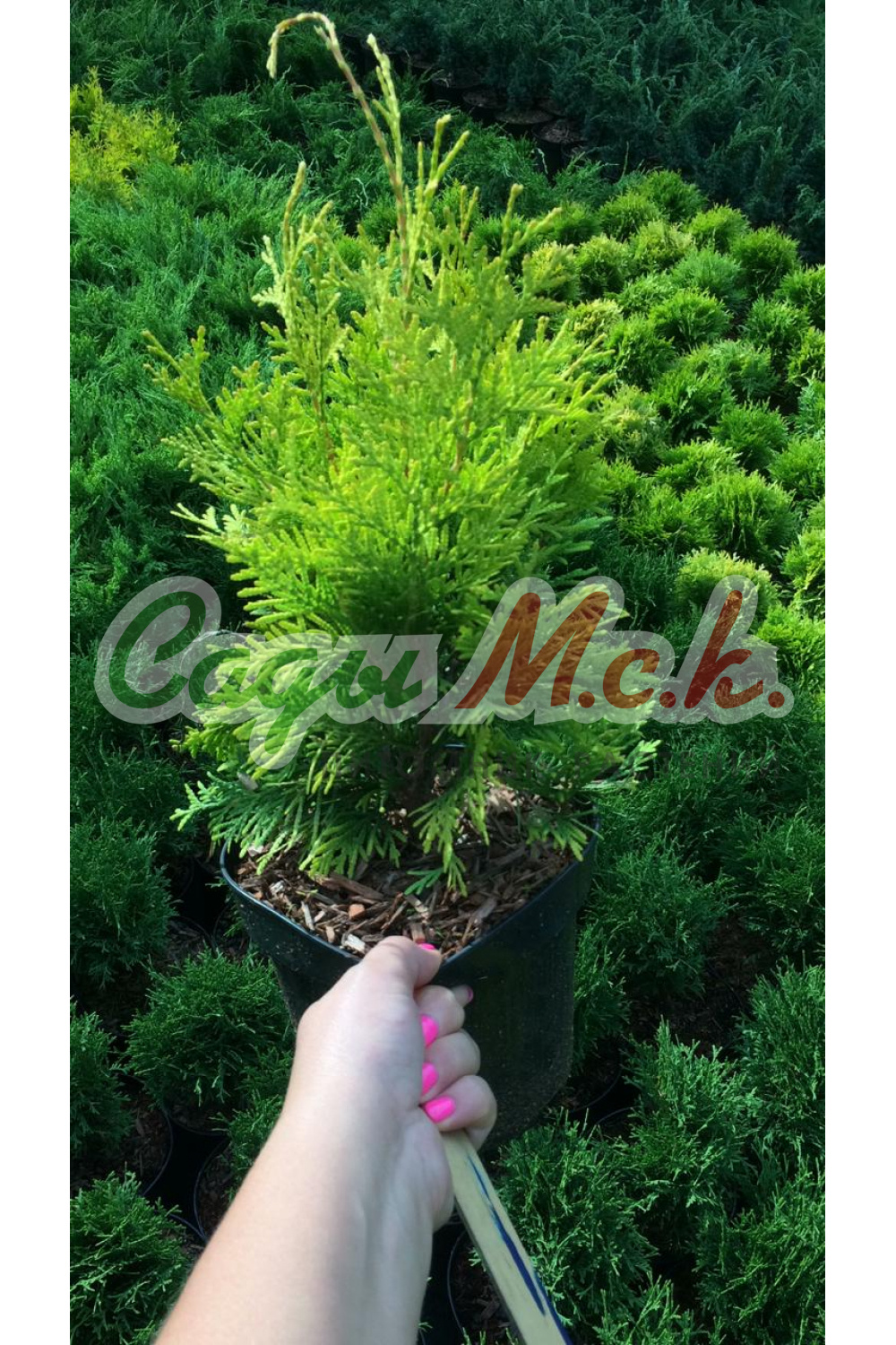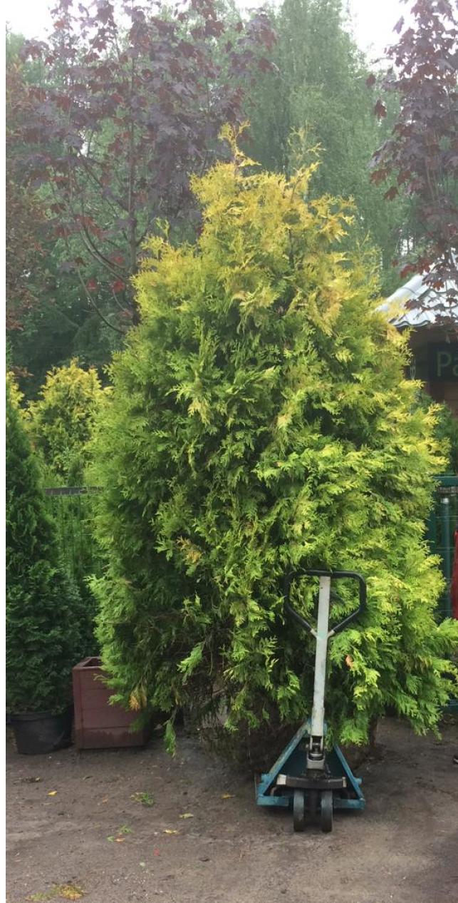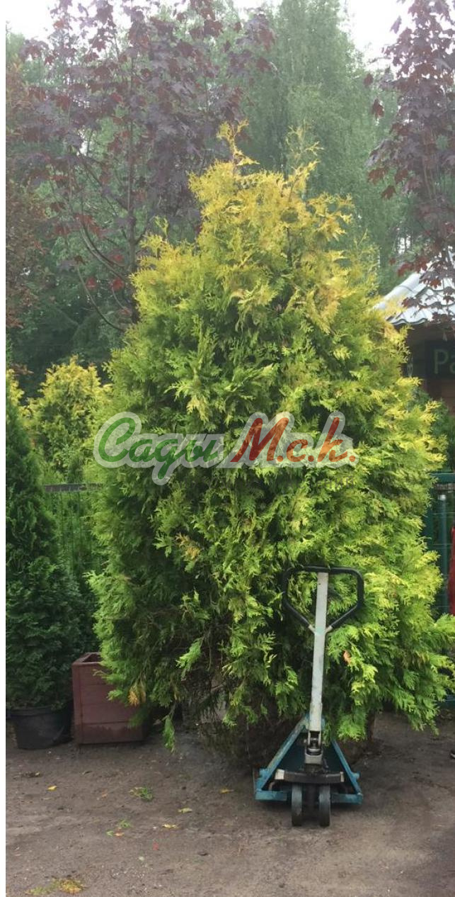 Прекрасный сорт невысокой медленнорастущей туи конической формы. В десятилетнем возрасте высота растения составляет 2м, максимальная высота – 5м. Хвоя ярко-желтая чешуевидная. В период активного роста цвет листвы золотистый, к зиме хвоя становится бронзовой