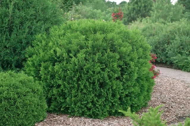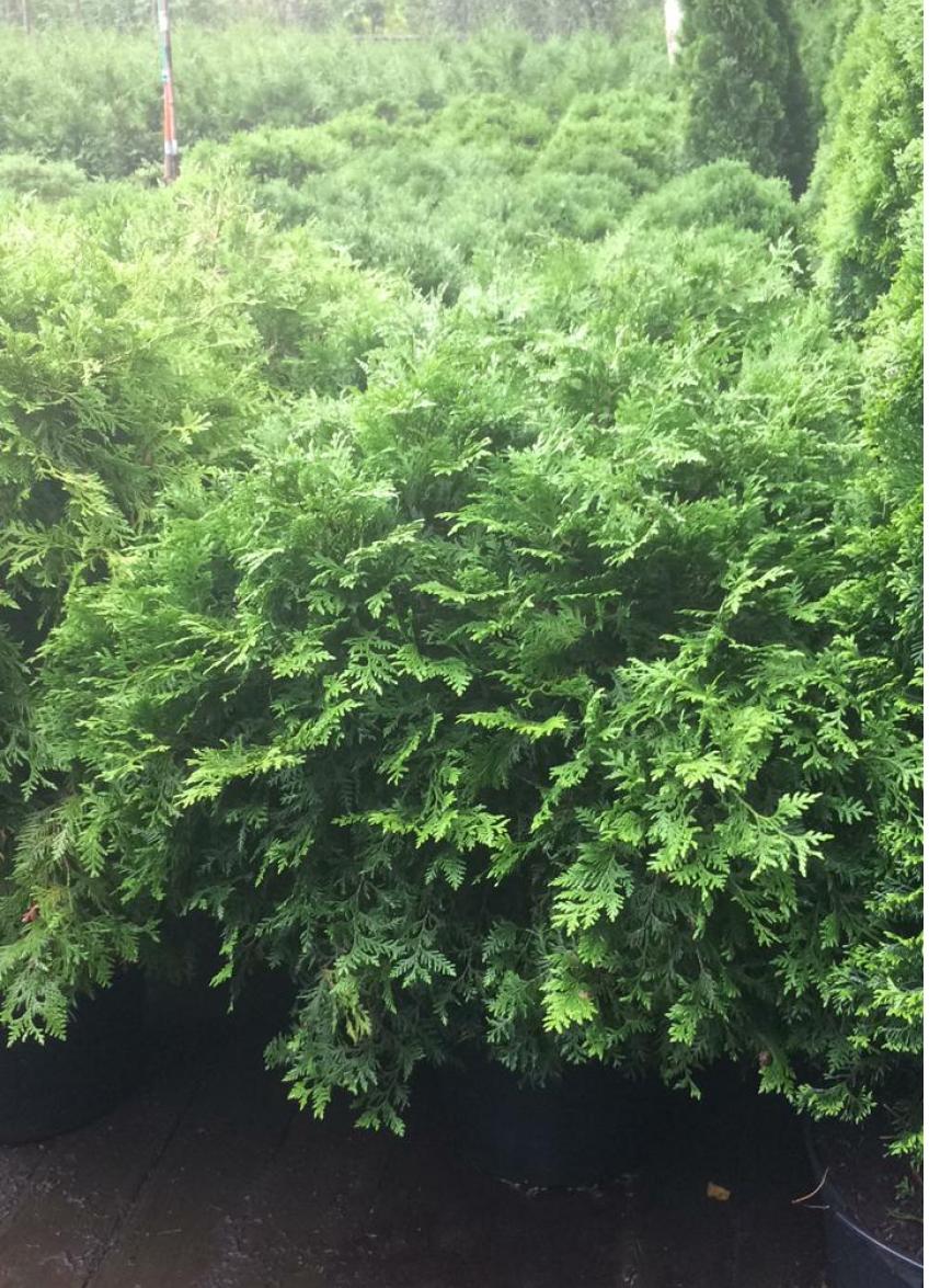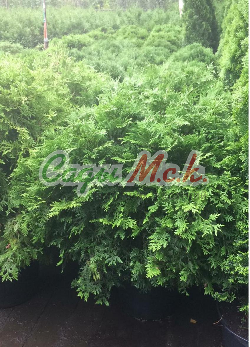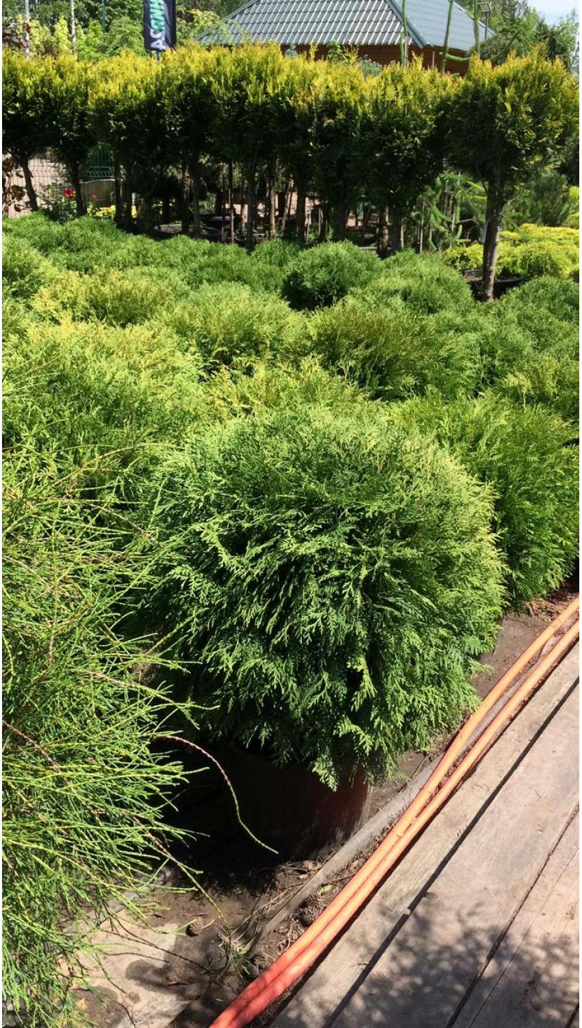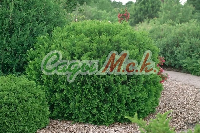 Крона шаровидная, позднее становится более широкой, вырастает в высоту до 1,5 метров в 10 лет. Одна из немногих туй, которая обладает округлояйцевидной формой кроны и достаточным ростом, чтобы выступать в качестве солирующего растения в композициях. Побеги густые, прямые , плоские. Хвоя от темно-зеленой до светло-зеленой. Плоды – маленькие коричневые шишки.