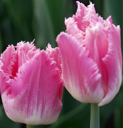 Тюльпан Dallas - сорт бахромчатый, неприхотливый. Высота растения 30-40 см. Листья нежные, темно-зеленого оттенка. Цветок крупный, насыщенно-нежно-розовый, с изящной, игольчатой, белой бахромой по краям лепестков. Высота бокала 6-7 см, диаметр цветка 8-10 см, аромат дивный, благоухающий. Цветет в апреле-мае, продолжительность цветения одного бутона 10-12 дней.
