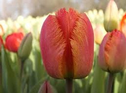Тюльпан Fridge Soltitse - высокий бархомчастый сорт. Зацветает в апреле. Размер стебля достигает 55 см. Окрас цветков красно-желтый, с игольчатой бахромой по краю лепестков. Сорт отлично подходит для срезки.