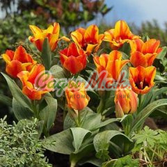 Тюльпан Cape Cod - изысканный сорт высотой 5-15 см. Цветок чашевидный, абрикосовый с желтым окаймлением по краю заостренных лепестков, внутри бронзово-желтый, центр черный с красными мазками, длиной до 8 см. Цветет до 10 дней. Листья с фиолетовыми штрихами.