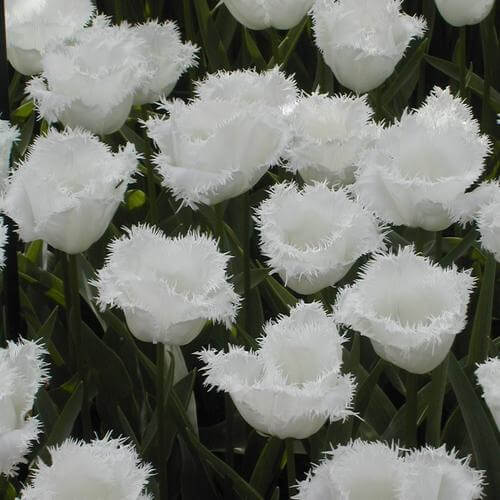 Тюльпан Honey Moon относится к бахрамчатым сортам. Цветет с начала до середины мая, образуя высокий, 10-11 см, молочно-белый с глубокой бахромой бутон. Отличительная особенность этих тюльпанов - игольчатая бахрома по краям лепестков, напоминающая иней. Форма цветка различная, неповторимая. Обладает тюльпан средней скоростью роста, подходит как для озеленения и украшения клумб, так и для букетов. Красивый молочно-белый цветок возвышается на прочной ноге высотой 50 см. Легко размножается, дает прекрасную срезку, подходит для выгонки.