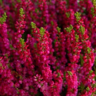 Вереск обыкновенный Дарк Бьюти - выразительнейший сорт с насыщенными, темно-красными полумахровыми цветками. Цветение обильное, наступает в сентябре и продолжается около месяца. Сорт невысокий, обычно дорастает до 20-25 сантиметров в высоту, образует компактные подушки.