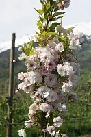 Вишня/сакура мелкопильчатая Аманогава - привитая форма сакуры на штамбе определённой высоты. Имеет плотную, колоновидную крону с вертикальными, густоразветвлёнными, часто с несколькими сильными основными стволами. По сравнению с другими сакурами, она как бы растёт в форме ракеты. Размер: достагиет высоты 4-7 м. и 1-2 м. в диаметре. Годовой прирост в высоту 30 см., в ширину 5 см. Кора: светло-коричневая. Листья: расположены поочерёдно, остро-эллиптические, 8-12 см. длиной, при распускании жёлто-коричневые, летом тёмно-зелёные; осенняя окраска жёлто-оранжевая. Цветение: многочисленные, душистые, слабо-махровые, светло-розовые цветки, 4 см. в диаметре, на длинных цветоножках, собраны в пучки по 3-5 штук, расположенные вдоль всей длины ветвей. Цветёт в конце апреля - начале мая
