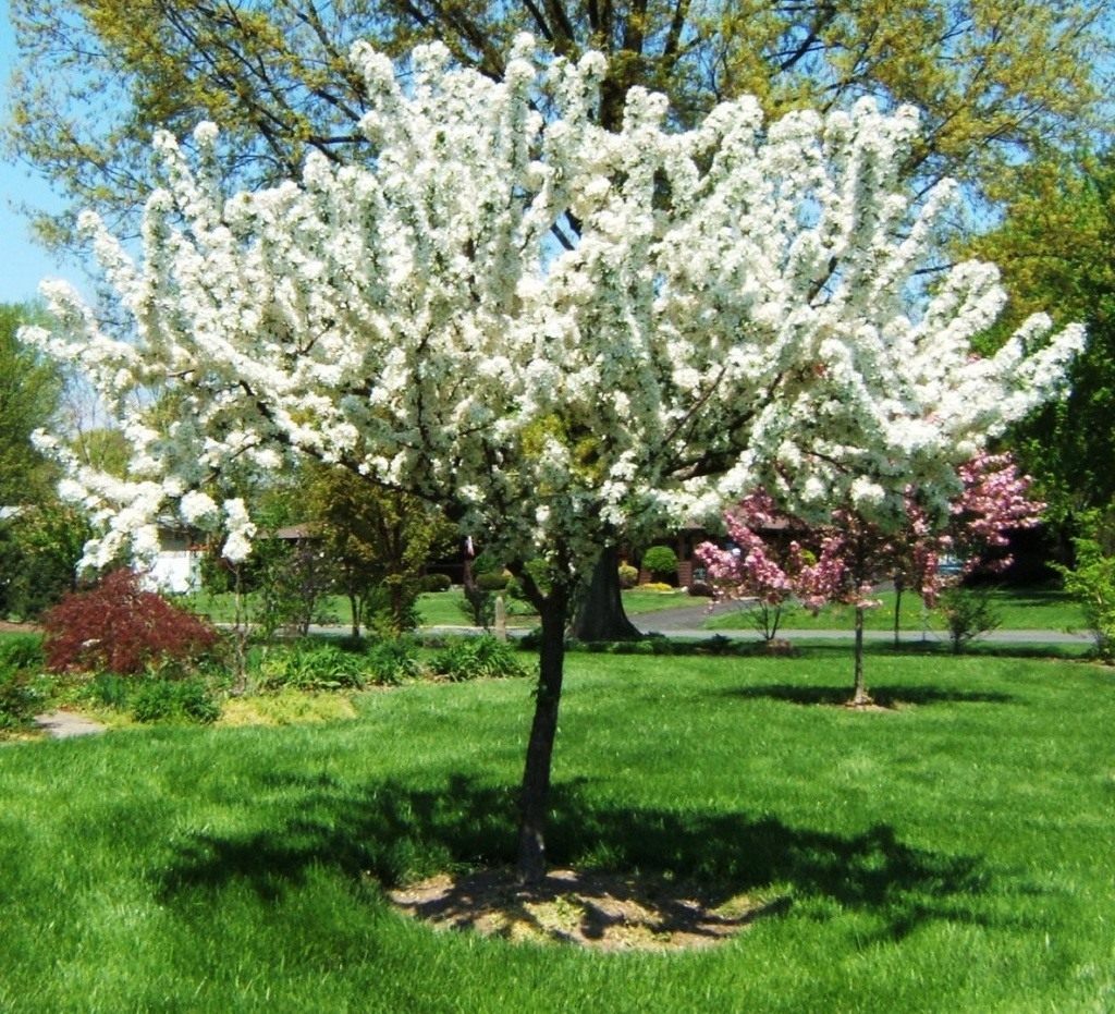 Карликовый сорт яблони торинго. Диаметр кроны превосходит высоту деревца. По сравнению с другими декоративными яблонями более теневынослива. Цветки белые, мелкие яблочки ярко-красные. Для солитерной посадки, также высаживают в живописных композициях (опушка и пр.). Почва питательная, дренированная.