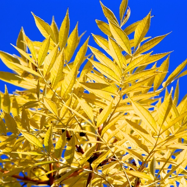 Листья: до 25-30 см длиной, желтые и желто-зеленые. Осенняя окраска золотисто-желтая.