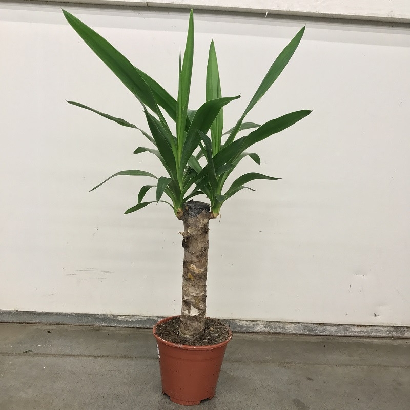 Юкка слоновая или древовидная популярное комнатное растение семейства агавовые. В природе распространено в Южной Америке, оттуда вывозят ее стебли, затем их распиливают на сегменты, сажают в горшки и выращивают до появления листьев. На стволе древовидной Юкки развиваются розетки темно-зелёных, сочных длинных листьев.По внешнему виду юкка напоминает пальму, а ее ствол ногу слона.