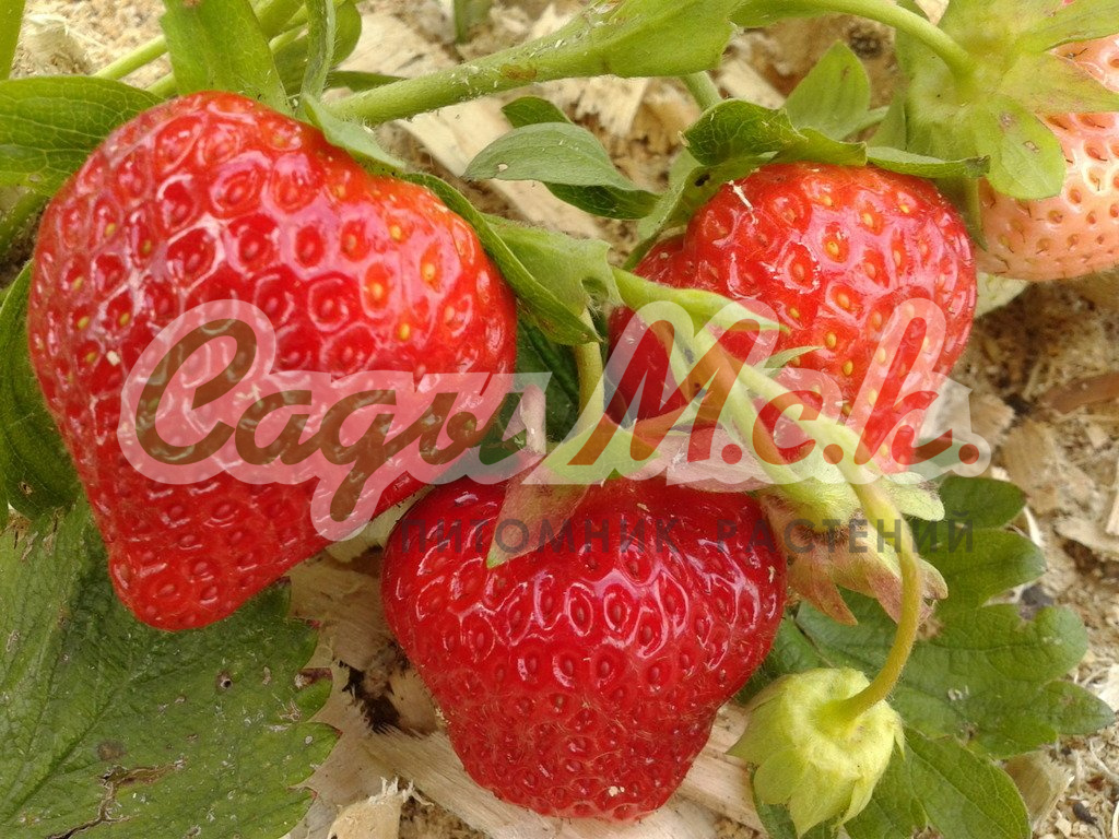 Саженцы земляники садовой Diamant принадлежат к ремонтантным сортам. Куст средний, облиственный, соцветия располагаются выше листьев. Плод крупный, глянцевый, светло-красный, в форме конуса, однородной структуры. Мякоть ароматная, плотная, сладкая, десертного вкуса, хорошо транспортируется. Сорт земляники садовой Diamant прекрасно переносит перепады температур. Устойчивость к заболеваниям высокая, урожайность хорошая при регулярном поливе, обработке почвы и внесении органических удобрений. Достоинства: регулярное плодоношение весь сезон, приятный вкус ягод.