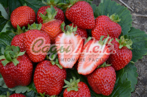 Саженцы земляники садовой Гирлянда принадлежат к ремонтантным сортам. Кустарник рослый, устойчивый к заболеваниям, отличается большой продуктивностью, формирует много цветоносов и усов, плодоношение осуществляется на образующихся розетка. Плод крупный, красивой формы, красный с плотной мякотью, обладающей удивительным ароматом земляники. Сорт земляники садовой Гирлянда плодоносит весь сезон, можно выращивать традиционным способом на грядках, либо в вертикальной культуре. Достоинства: зимостойкость, декоративность, десертный вкус и товарный вид ягод, транспортабельность.