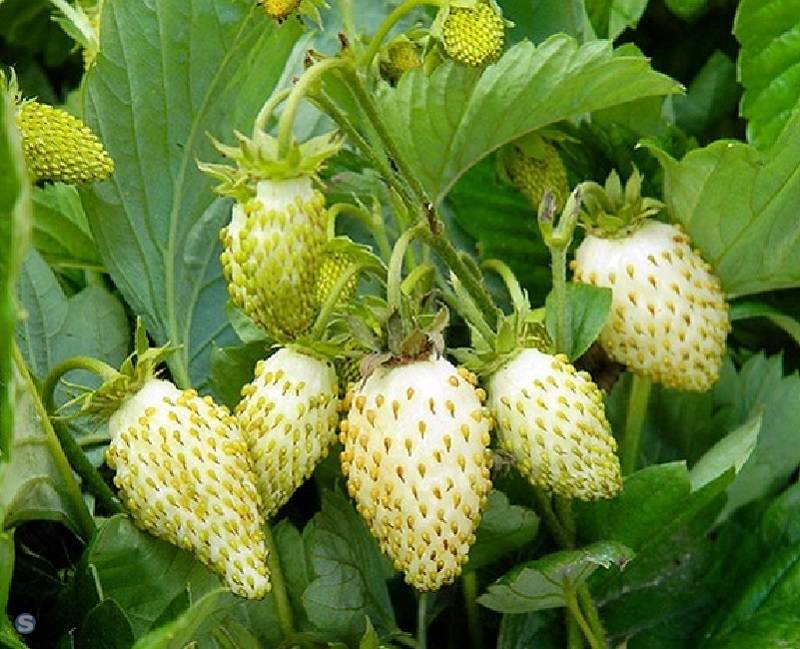 Саженцы земляники садовой Белоснежка принадлежат к ремонтантным сортам. Куст средний, с густой листвой, небольшим числом цветоносов. Плод белый, имеет коническую форму. Мякоть нежная, кисло-сладкая, очень ароматная, десертного вкуса, богата витаминами. Сорт земляники садовой Белоснежка начинает плодоносить с середины июня и до первых заморозков. Листья и цветы растения часто используют для приготовления целебных отваров. Преимуществами являются:отличные вкусовые характеристики;сильный аромат; высокое содержание витаминов в плодах;возможность использования для переработки.