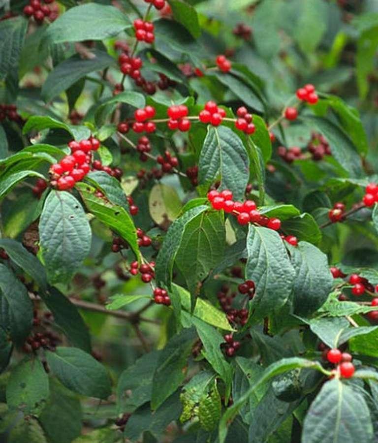 Темно-красные, иногда черные ягоды появляются в конце лета. Плоды маленькие, но их очень много. Даже, когда ветви полностью оголяются после листопада, яркие бусины сохраняются. Боковые побеги растут строго горизонтально, и в период цветения практически полностью покрыты белоснежными цветками