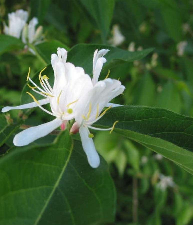 Цветки собраны в пары, окрашены в белый цвет. Трехнедельное цветение сопровождается легким ароматом. При отцветании окраска меняется на желтоватую.